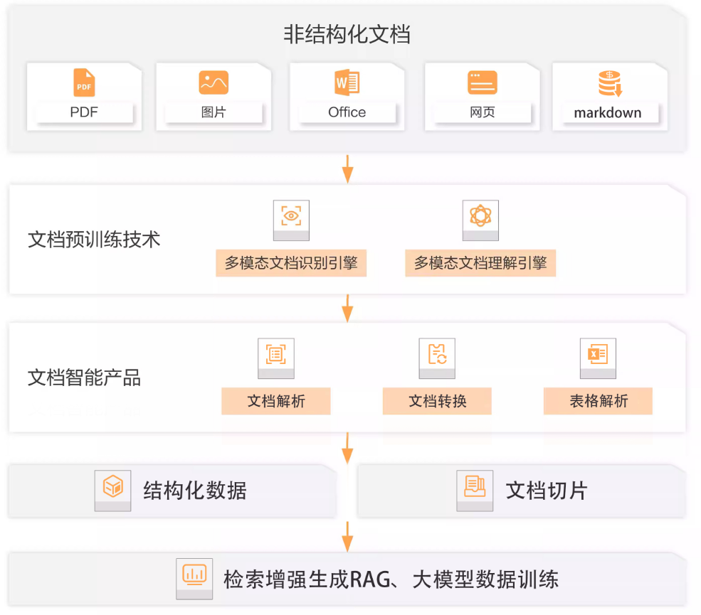 - 数据准备环节,阿里云考虑到文档具有多层标题属性且不同标题之间存在关联性,提出多粒度知识提取方案,按照不同标题级别对文档进行拆分,然后基于Qwen14b模型和RefGPT训练了一个面向知识提取任务的专属模型,对各个粒度的chunk进行知识提取和组合,并通过去重和降噪的过程保证知识不丢失、不冗余。最终将文档知识提取成多个事实型对话,提升检索效果;